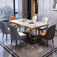 हल्के लक्जरी आधुनिक डाइनिंग रूम फर्नीचर स्टेनलेस स्टील संगमरमर डाइनिंग टेबल आयताकार सोने की मेज और कुर्सियां